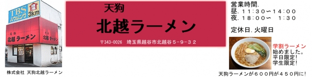 越谷市北越谷のラーメン店です。ご賞味ください。