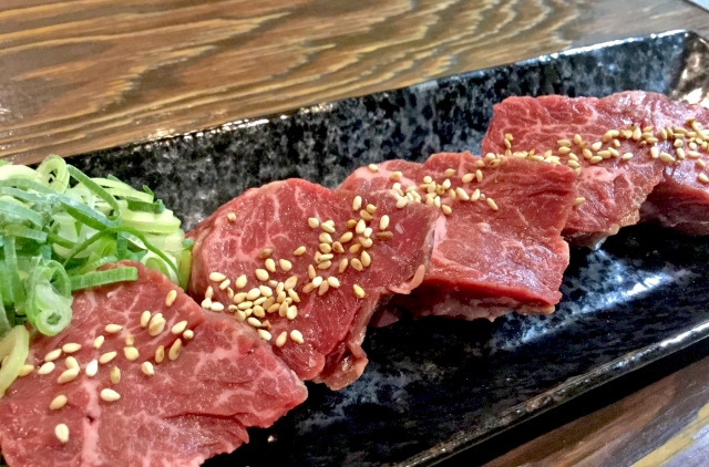 レアで食べる「厚切りハラミ」「コメカミ塩焼き」は他ではなかなか味わえない珍しい一品!