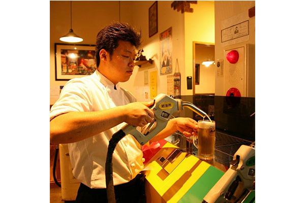 ガソリン給油機が出る生ビール 石窯で焼いたピッツァ!話題満載の居酒屋