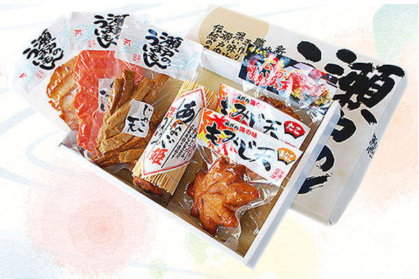 干物など地元で獲れる魚介を使った海産物が豊かに揃う老舗。