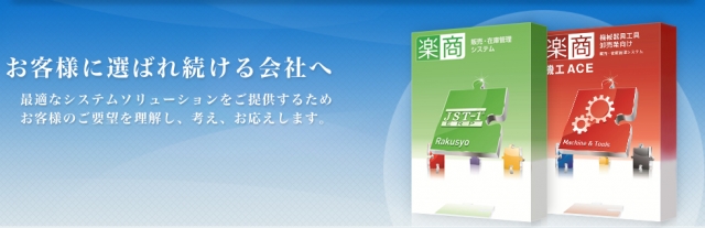 弊社はそのような変化に充分対応すべく、自社開発パッケージソフト「楽商」シリーズをベースにして日々変化するニーズに対し、知的資源のコア化、スキルの蓄積に努力して、ソリューション能力を一層高めてまいります。