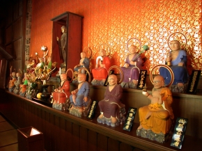 | 備考 | 「五徳山」は水の五つの徳を讃えた山号です。 本堂(観音堂)、県指定重要文化財の六角二重塔(開運六地蔵)、鐘楼堂、釈迦堂があり、釈迦堂内には釈迦三尊像や県指定重要文化財の円空仏(阿弥陀如来座像)などが安置されています。 現在、釈迦堂特別無料拝観中です。 |