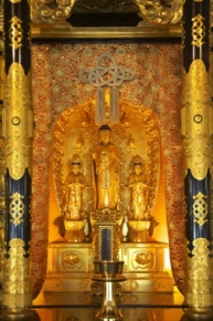 御本尊は信州善光寺御本尊、一光三尊阿弥陀如来佛の御分身をお祀りしております。