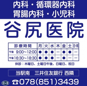 神戸市東灘区御影の谷尻医院は、阪神御影駅近くのこの地で開業して以来、長年地域の皆様の「かかりつけ医」として、内科・循環器科・胃腸科・小児科の診療を提供してまいりました。谷尻医院の言う「かかりつけ医」とは、患者さん及びご家族の普段の健康管理をしてくれる身近な医師のことで、日頃の診察の他にも健康相談や指導も含め、いろいろな問題について気軽に相談できる医師です。また、「かかりつけ医」の一番大切な役割は、地域の方々がいくつになっても、いつまでも人間としての尊厳を尊重され、住み慣れた場所で、家族及び近くの人々に囲まれて安心して暮らすことを実現することだ、と考えています。