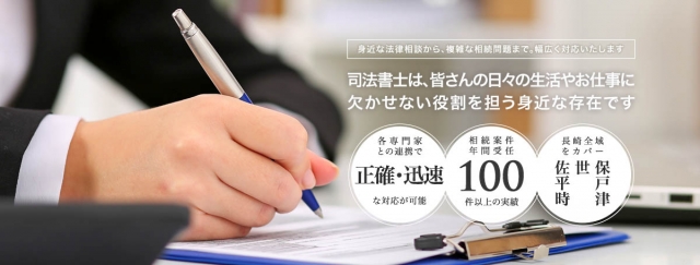 わたしたちは、代表の松田信哉の個人事務所を前身とした佐世保、平戸、時津を運営拠点とする司法書士法人です。