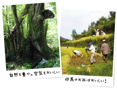 但馬は、兵庫県の北部に位置し、氷ノ山、扇ノ山、鉢伏山など兵庫県の屋根を形成する1,000m級の山々が集中し、その深い緑の間を縫うように円山川をはじめとする河川が日本海へ注ぎ込んでいます。