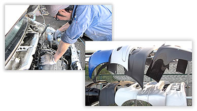 外装部品やパンパー、ドア、フェンダー、サスペンション、ドライブシャフト、マフラー、等の取り外しを行います。