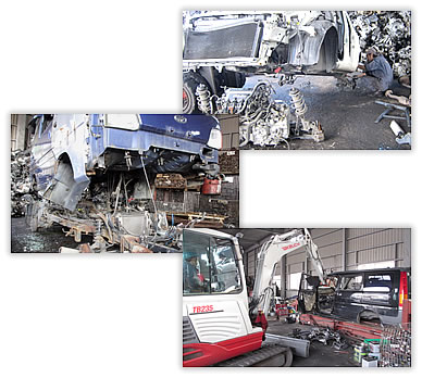 使用可能な部品は中古部品(リサイクルパーツ)として再利用し、再利用できないパーツはスクラップ・分別され、資源として再利用されます。