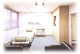 トイレ、外線直通電話、冷蔵庫、テレビ等を完備した個室でゆったりとご休息いただきながら、最新鋭の診断機器で、あなたの健康をチェックいたします。