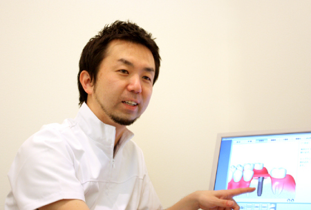 インプラントは自分の歯と同じように顎の骨で支えられている為、ブリッジや入れ歯といった他の治療法に比べ残っている歯にかかる負担もなく、違和感が出たりすることがありません。
