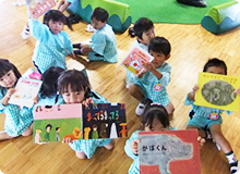 ・広々とした絵本コーナーがあり、子どもたちに絵本の貸し出しも行っています。