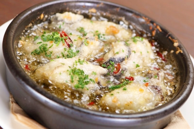 小エビのほかに、つぶ貝やオススメの牡蠣のアヒージョも人気です。