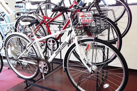 店内にはお買い得自転車(スポーツサイクル、ミニサイクル、折りたたみ自転車、電動アシスト自転車等…)原付バイク(新車、中古車)も豊富に取り揃えております。