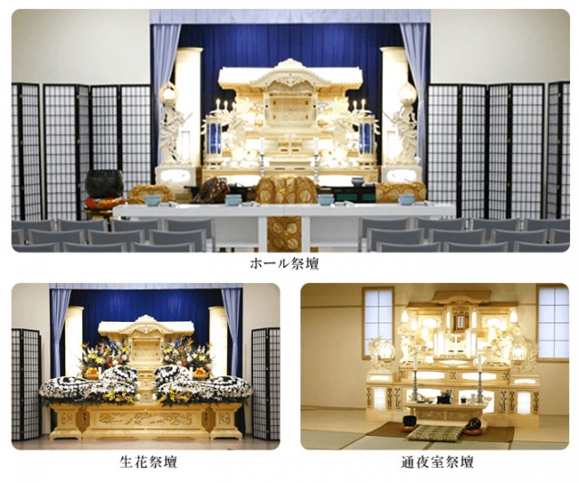 当社には四か所の葬儀場がありますが、すべて家族葬から社葬まで対応しております。