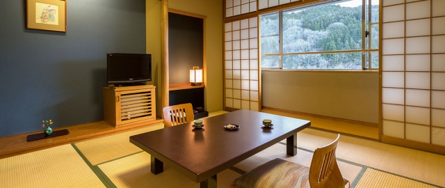 別名「美人の湯」と言われる炭酸水素塩泉に浸かり、大自然に囲まれ静かに過ごせる館内でお寛ぎください。思い出に残るようなご滞在のお手伝いをします。