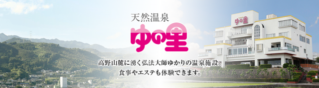 天然温泉「ゆの里」は霊山として名高い高野山麓に湧く「金水」「銀水」のお水をブレンドした温泉施設。