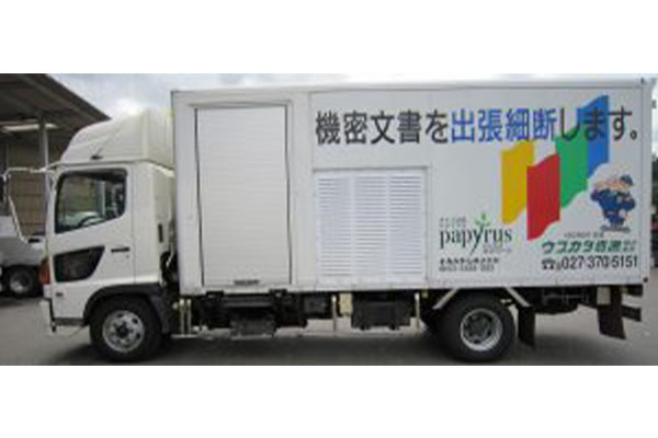 排出量の多い場合や現場での細断作業が困難な場合など、鍵付きの箱型トラックで、ご希望の場所までお伺い致します。