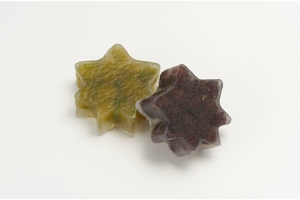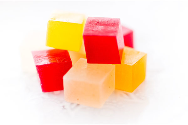 寒天と砂糖を煮詰めてつくる伝統の琥珀糖とフランボワーズ、マンゴー、