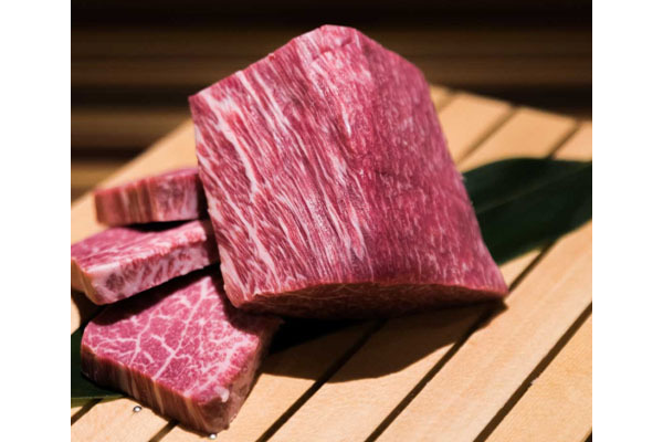 鹿児島県肝属郡の「新村畜産」より店主が選び抜いた、融点が低くキメ細かな肉質の黒毛和牛雌牛の”赤身”を主に使っております。