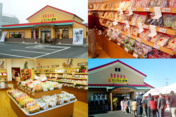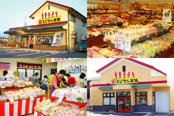 当社は、愛知県碧南市権田に出店している「えびせん家族」本店を始め、周辺エリアに中央店や高浜店など合計8店舗を展開しております。