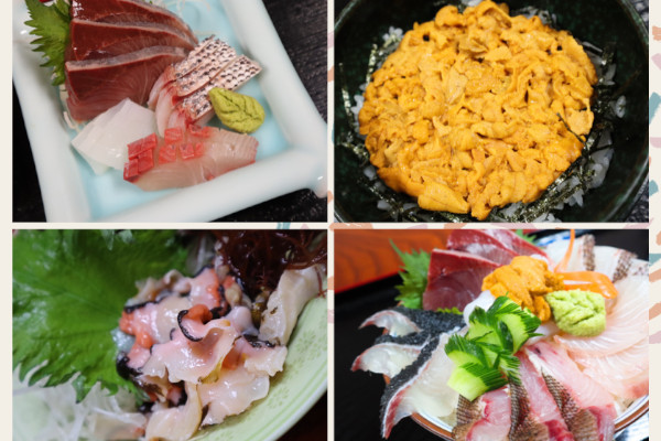 生うに丼に刺身、小鉢、味噌汁が付いた定食はボリュームがあると好評です。