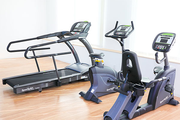 当院のリハビリ室は様々なリハビリテーションができるように、開放的な広々とした設計にしています。