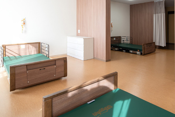 当施設の多床室は、従来型の4人1室としております。各部屋にトイレと洗面所を設置している他、居室内では間仕切りカーテンや固定間仕切壁を使うことで、プライバシーの配慮を行っています。