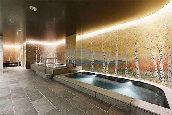 大浴場はモザイクタイルの使用により、北海道の風景を再現しています。