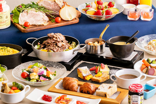 ホテル2階 吹き抜けの開放間溢れる店内にて、和洋朝食のビュッフェをお楽しみいただけます。