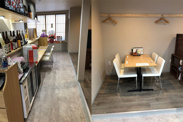 白を基調としたおしゃれな店内は、照明に照らされたお酒の瓶がディスプレイされており、大人の雰囲気を盛り上げます。ドリンクの種類も豊富で、日本酒・焼酎・カクテル・生ビールはもちろん、和食にぴったりのワインもご用意しており、お料理に合わせておすすめ致します!