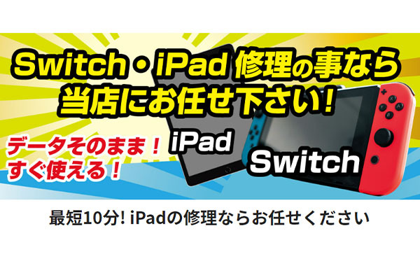 最短10分! iPhone・スマホ・Switch・iPadのの修理ならお任せください!