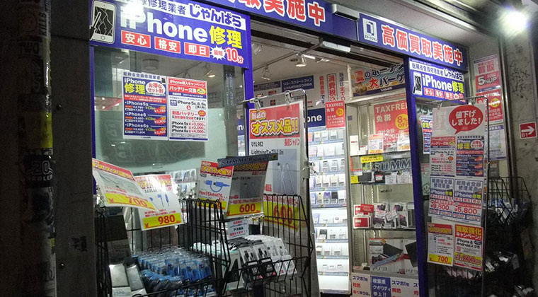 『じゃんぱら渋谷道玄坂店』から5分程ほどの場所にあるのが『じゃんぱら渋谷宇田川店』です。こちらでも『じゃんぱら渋谷道玄坂店』と同様にPCやスマートフォンの中古品の販売や買取りを行っていますが、『じゃんぱら渋谷道玄坂店』と違うのは、『じゃんぱら渋谷宇田川店』はそれ以外のオーディオ・ヘッドホン・イヤホンといったオーディオ関連製品に特化しているということ。オーディオ製品の在庫に関しては、じゃんぱらの各店舗の中で一番の品揃えとなっており、じゃんぱらの中でもオーディオに一番詳しいスタッフが在籍しているようです。その為、渋谷で『オーディオ製品を安く購入したい』という方はこちらの『じゃんぱら渋谷宇田川店』もオススメです。こちらの店舗でもiPhoneの修理対応を行っています。