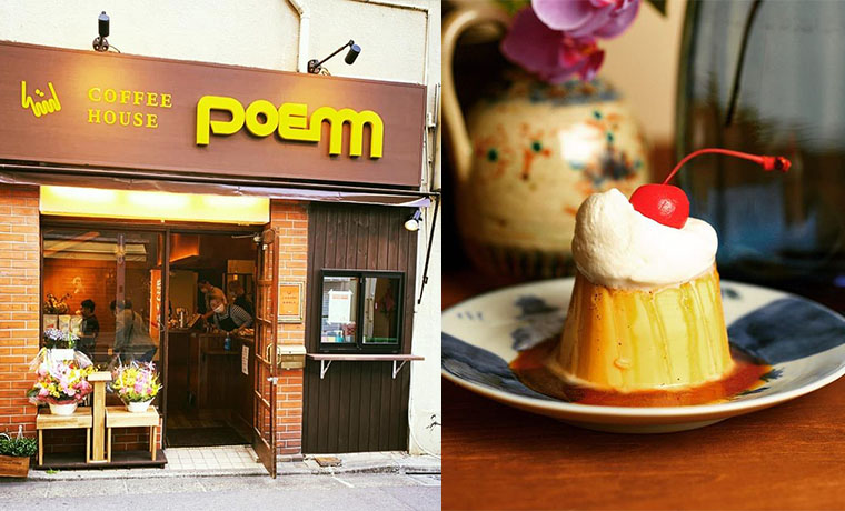 エモい喫茶店が多い高円寺駅で固めプリンを楽しめるのは「Poem MANO A MANO COFFEE(ぽえむ マノ ア マノ コーヒー) 高円寺南口店」です。こちらは2020年にテイクアウト窓口を併設して、リニューアルオープンしました。焼き立てスコーンやケーキ、フルーツサンドなど軽食・カフェメニューが楽しむことができます。