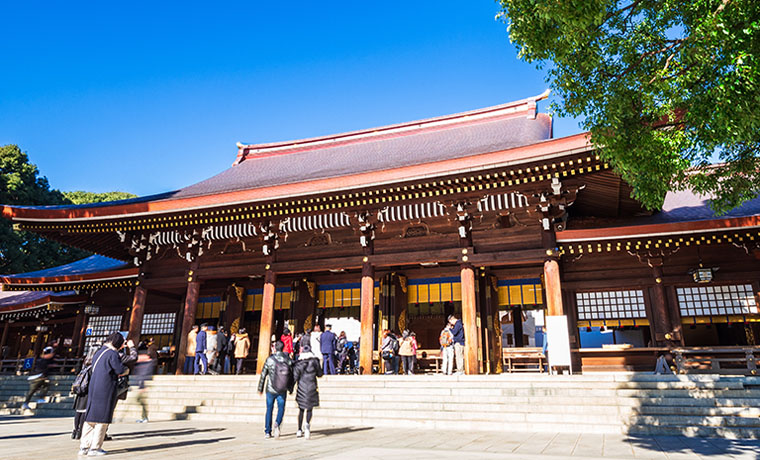 原宿駅すぐ近くの「明治神宮」は例年、初詣の参拝者数日本一となることでも有名で、明治天皇と昭憲皇太后をお祀りするために創建された神社です。約70万平方メートルの広大な敷地には、都会の真ん中にあることが信じられないほどの緑豊かな人工林“永遠の杜”が広がります。